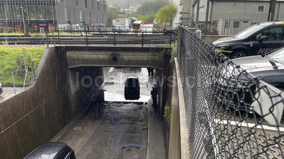 A causa dell'acqua rimane bloccato con l'auto in un sottopassaggio: intervento dei pompieri a Taverne-Torricella, martedì 23 settembre 2025, ore 15:00