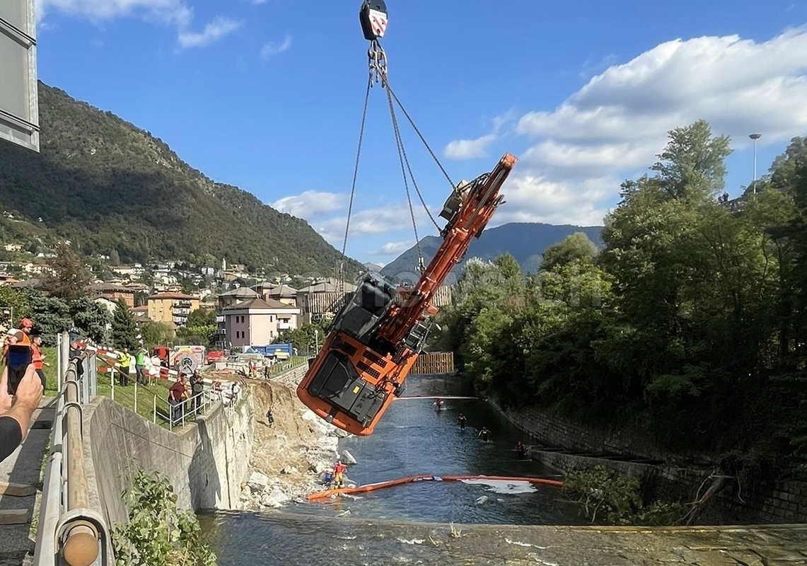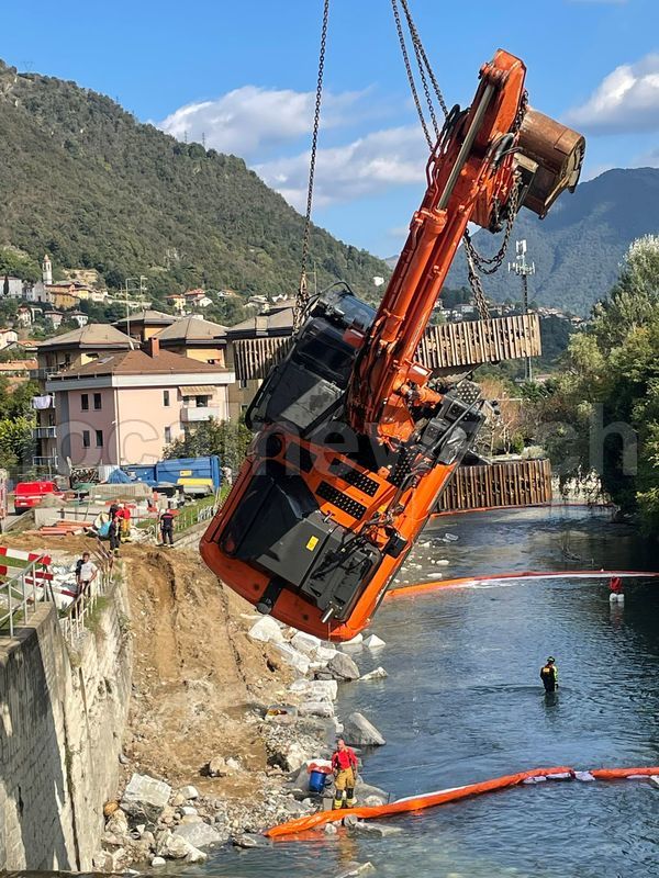 Si è reso necessario l'utilizzo di due grosse gru per riuscire a recuperare il grosso escavatore che giovedì mattina si era rovesciato nel fiume Breggia in zona Pizzamiglio a Vacallo. Nelle operazioni, che hanno reso necessaria la chiusura di Via del Breggia, hanno collaborato anche i pompieri del Mendrisiotto per la messa in sicurezza della zona e per allestire una serie di sbarramenti atti a contenere i liquidi inquinanti che potevano uscire dal mezzo meccanico durante lo spostamento. Un'operazione, quella del recupero del mezzo, complessa e lunga che si è prolungata per l'intera giornata. L'escavatore è stato finalmente posato su rimorchio di un camion attorno alle ore 19:00. La Polizia Comunale di Chiasso ha gestito il traffico.