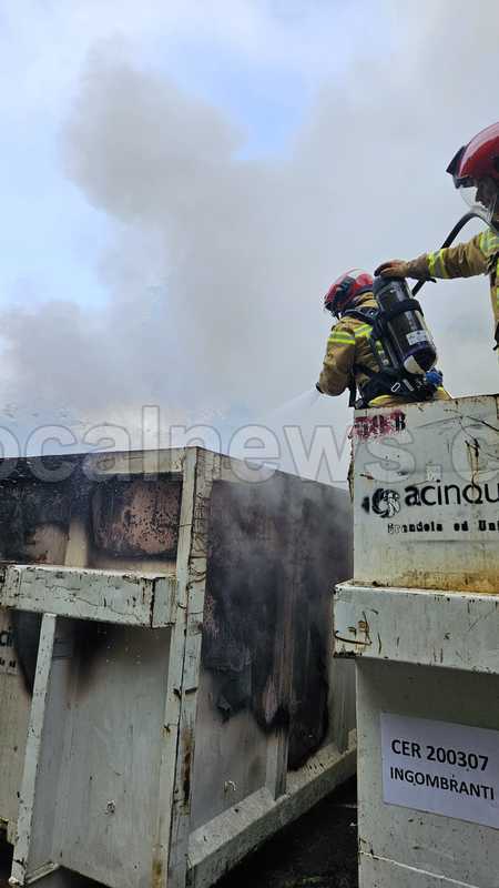 Fiamme in due benne presso il centro di raccolta ingombranti a Campione d'Italia, mercoledì 8 ottobre 2025, ore 10:00