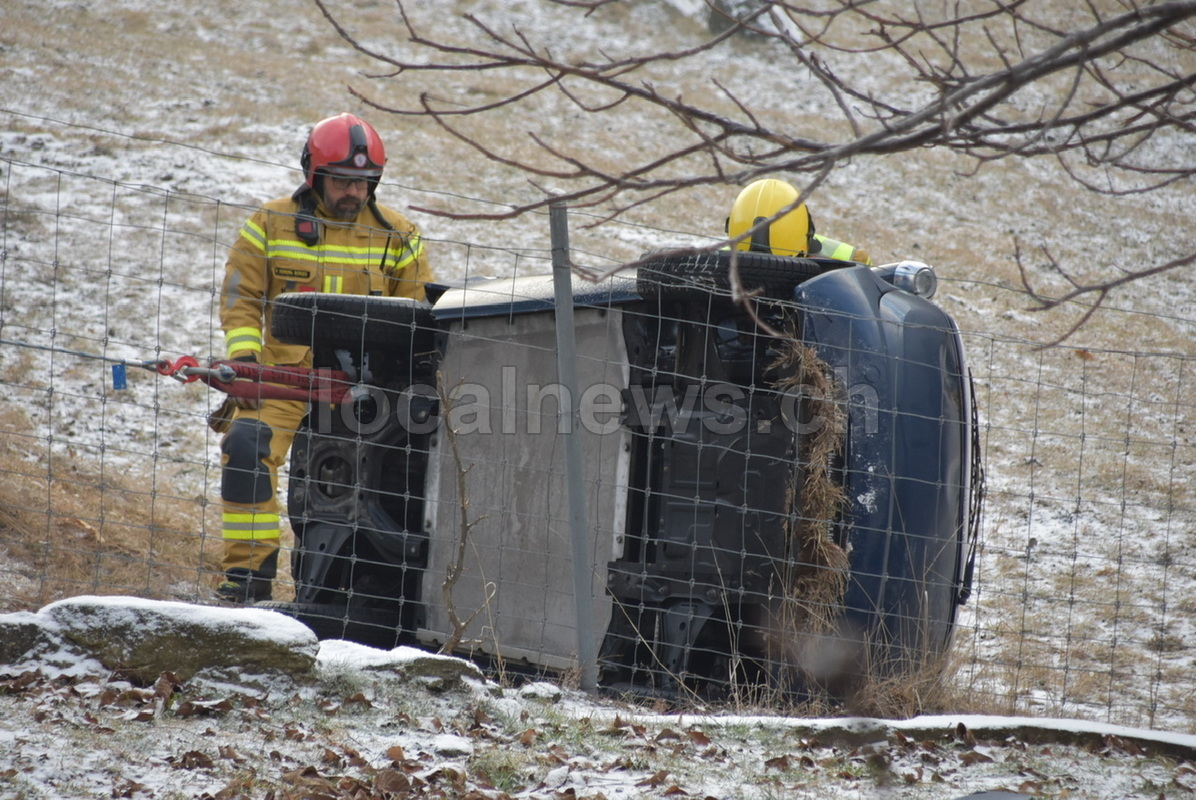 Sbanda, esce di strada e termina in una scarpata rovesciato sul fianco: un ferito leggero in Valle Morobbia, venerdì 9 gennaio 2026, ore 08:40