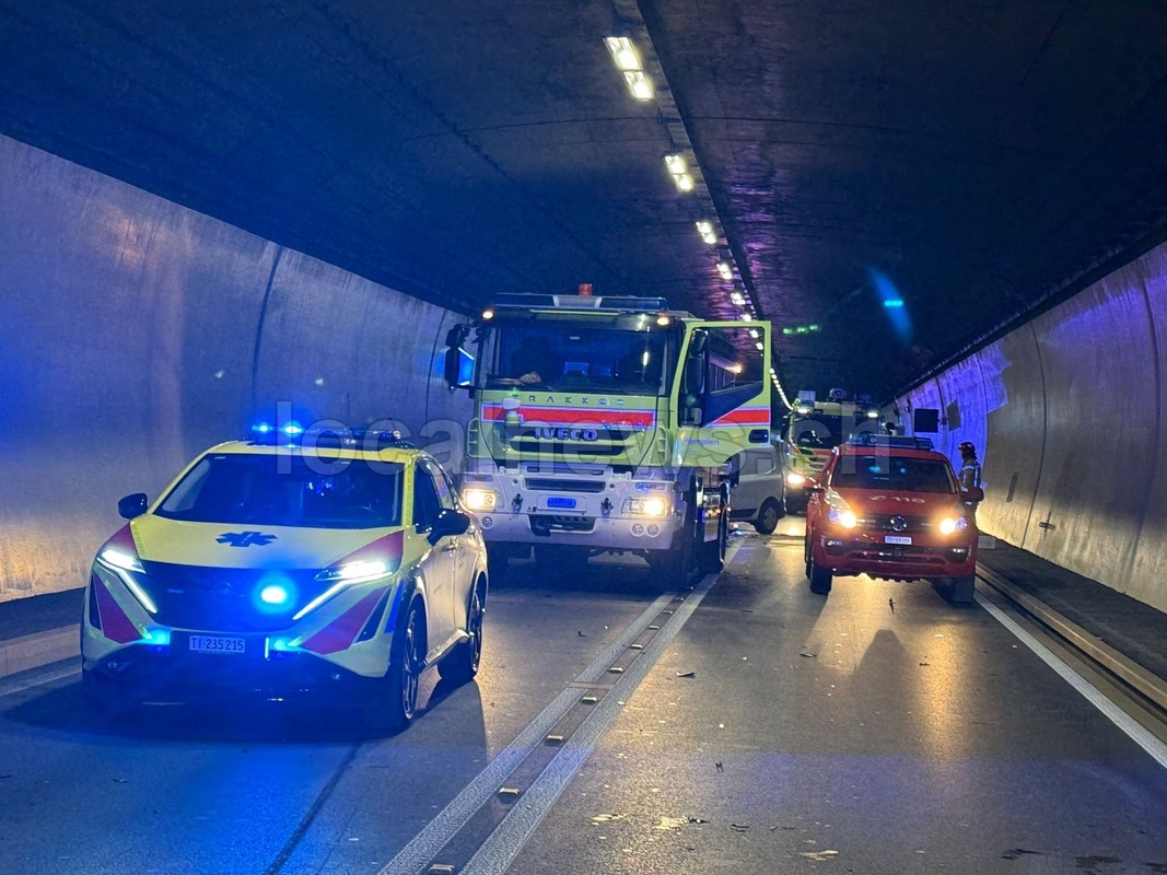 Scontro nella galleria Vedeggio-Cassarate: due feriti non gravi e grossi disagi alla circolazione, sabato 24 gennaio 2026, ore 14:45