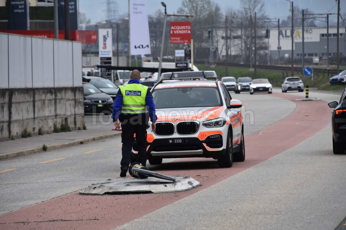 Urta lo spartitraffico e cade a terra: motociclista ferito in un incidente a Gordola, martedì 10 marzo 2026, ore 08:30