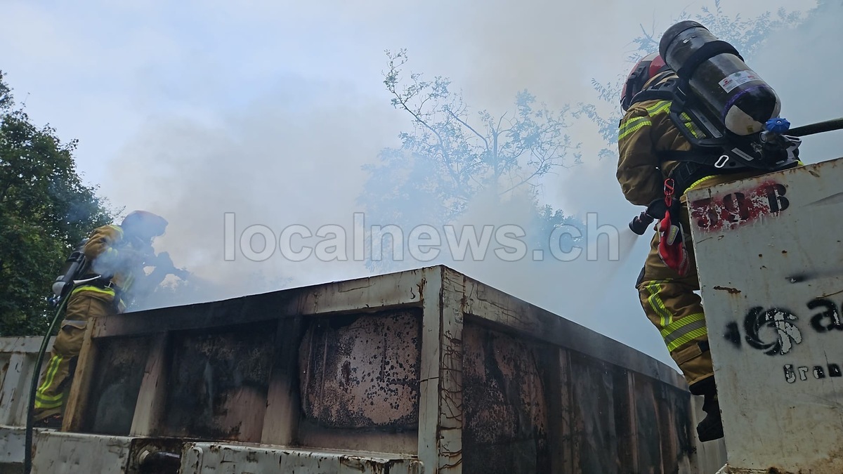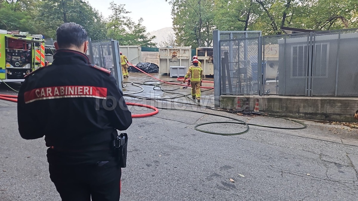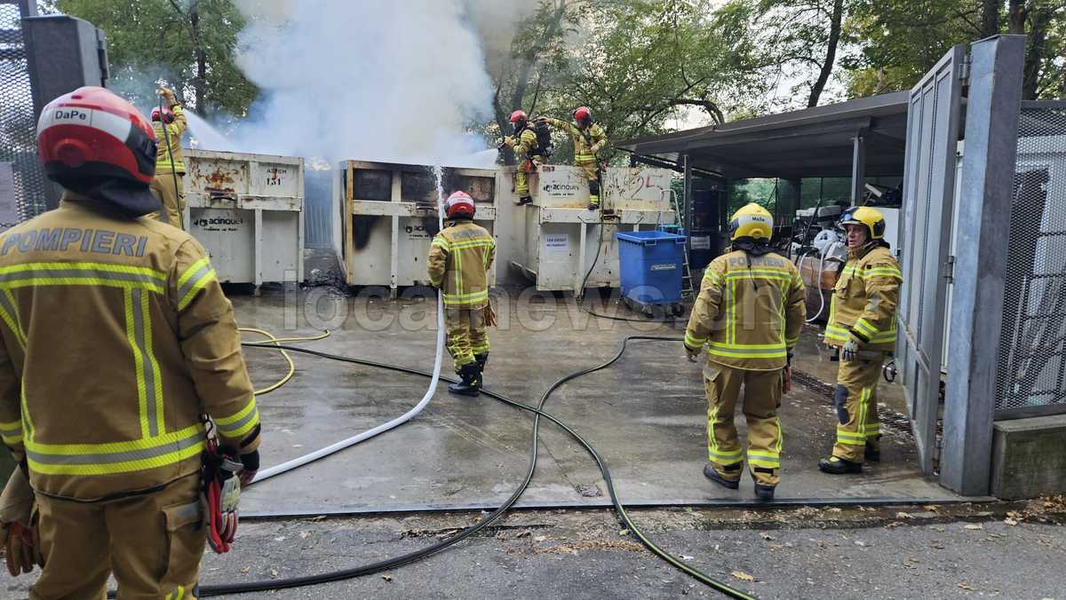 Fiamme in due benne presso il centro di raccolta ingombranti a Campione d'Italia, mercoledì 8 ottobre 2025, ore 10:00