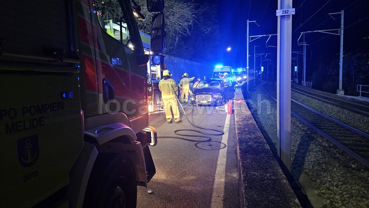 Perde il controllo dell’auto e termina contro un muro: due feriti sulla Cantonale a Melide, domenica 23 novembre 2025, ore 03:30