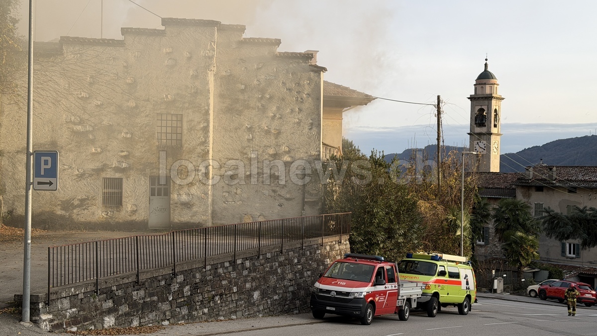 Fiamme in una casa disabita a Vacallo: impegnativo intervento per i pompieri, domenica 23 novembre 2025, ore 15:30
