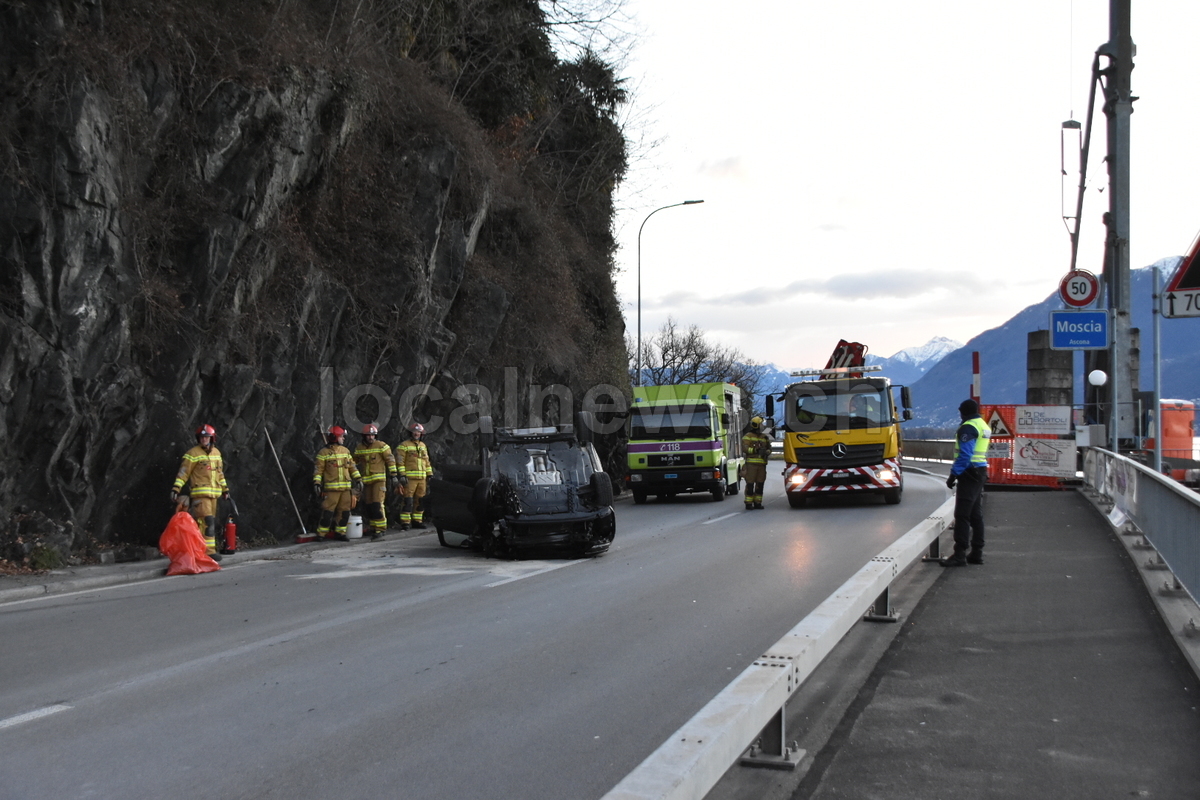 È di due feriti, entrambi apparentemente non gravi, il bilancio dell‘incidente accaduto domenica mattina, attorno alle ore 07:30 in via Cantonale a Moscia (Ascona). Stando alle prime informazioni raccolte una Volkswagen immatricolata in Ticino circolava in direzione di Brisasgo con a bordo due persone quando, per motivi da stabilire, il conducente ha perso il controllo andando apparentemente ad urtare la roccia a lato della carreggiata ed in seguito il veicolo si è rovesciato, terminando la sua corsa rivolta sul tetto. I due occupanti sono riusciti ad uscire dall‘auto e sono stati soccorsi dal personale sanitario del SALVA che, dopo avergli prestato le prime cure li ha trasportati al pronto soccorso per ulteriori accertamenti. Sul posto anche i pompieri di Locarno per la messa in sicurezza della scena e gli agenti della Polizia per i rilievi del caso ed il disciplinamento del traffico, rimasto perturbato per circa un‘ora.