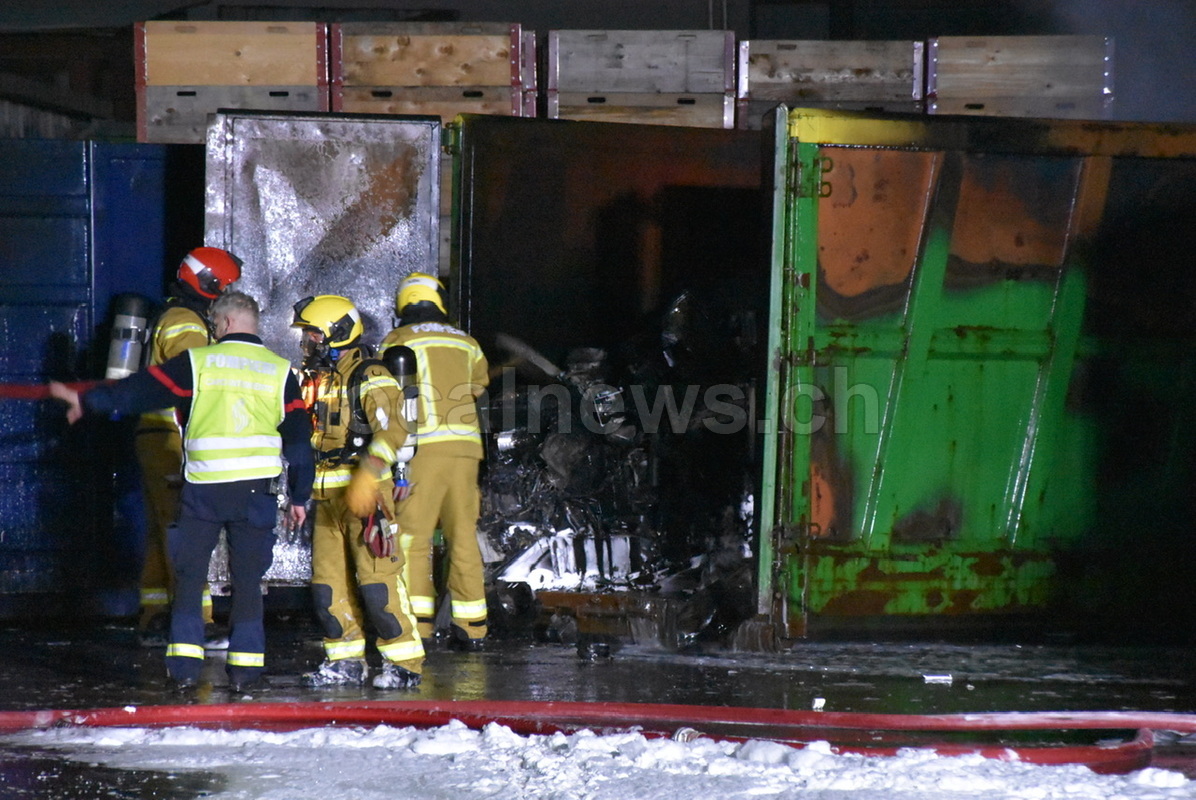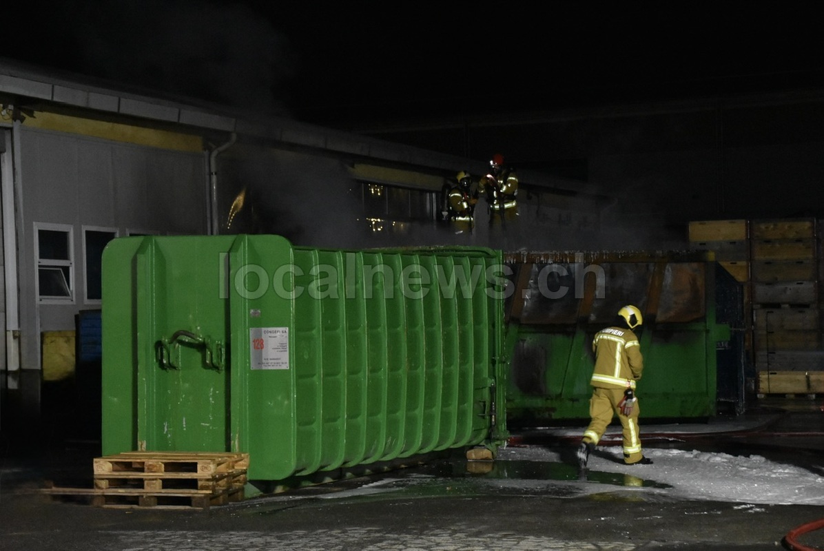 In fiamme un container all'esterno di un capannone nella zona industriale di Giubiasco, lunedì 16 marzo 2026, ore 03:45