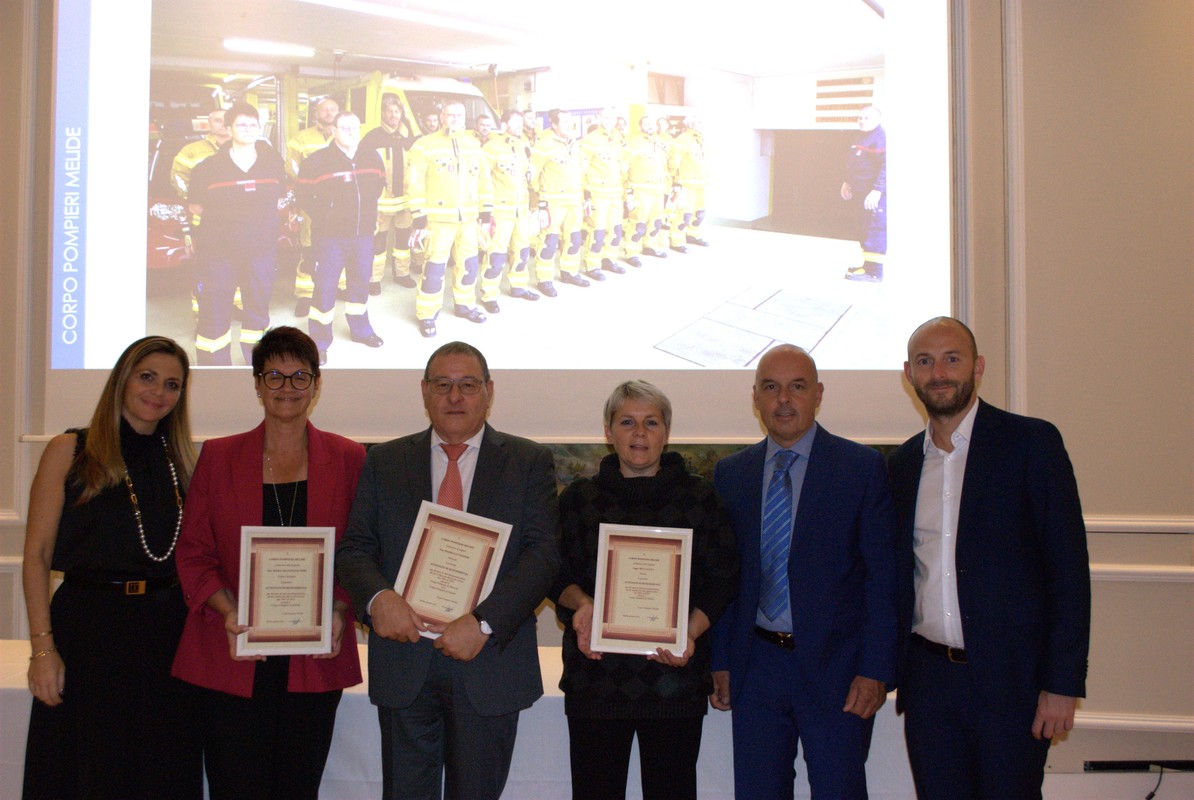 Aldo Facchini, già Comandante della Protezione Civile di Lugano Città. Il Comandante Marzio Riva ha ricordato con gratitudine i 16 anni di collaborazione professionale con lui, sottolineando come il sostegno di Facchini gli abbia permesso di conciliare la funzione di Comandante dei pompieri di Melide con il suo impegno professionale presso la Protezione civile Lugano Città ringraziamenti che sono stati estesi anche alla Delegazione del Consorzio e all’attuale Comandante ten col Christian Albeverio.